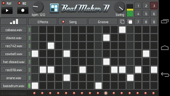 : Create advanced drum beats with Beat Maker II. Apply effects (modulation, delay, reverb & eq) -adjust attack, decay & volumes -apply grooves and export wave files to share, or to mix with your favourite digital audio workstation. Great to work out an idea on the go! If you like desktop applications like Fruity Loops, then this is the app for you! Have fun!Features: